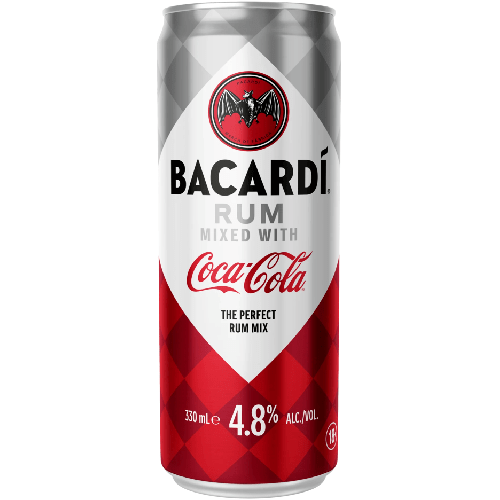 BACARDI RUM MIXED WITH COLA 4.8% CANS 330ML