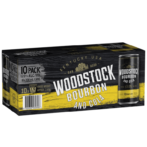 - WOODSTOCK BOURBON & COLA 10PK 12% CAN 200ML